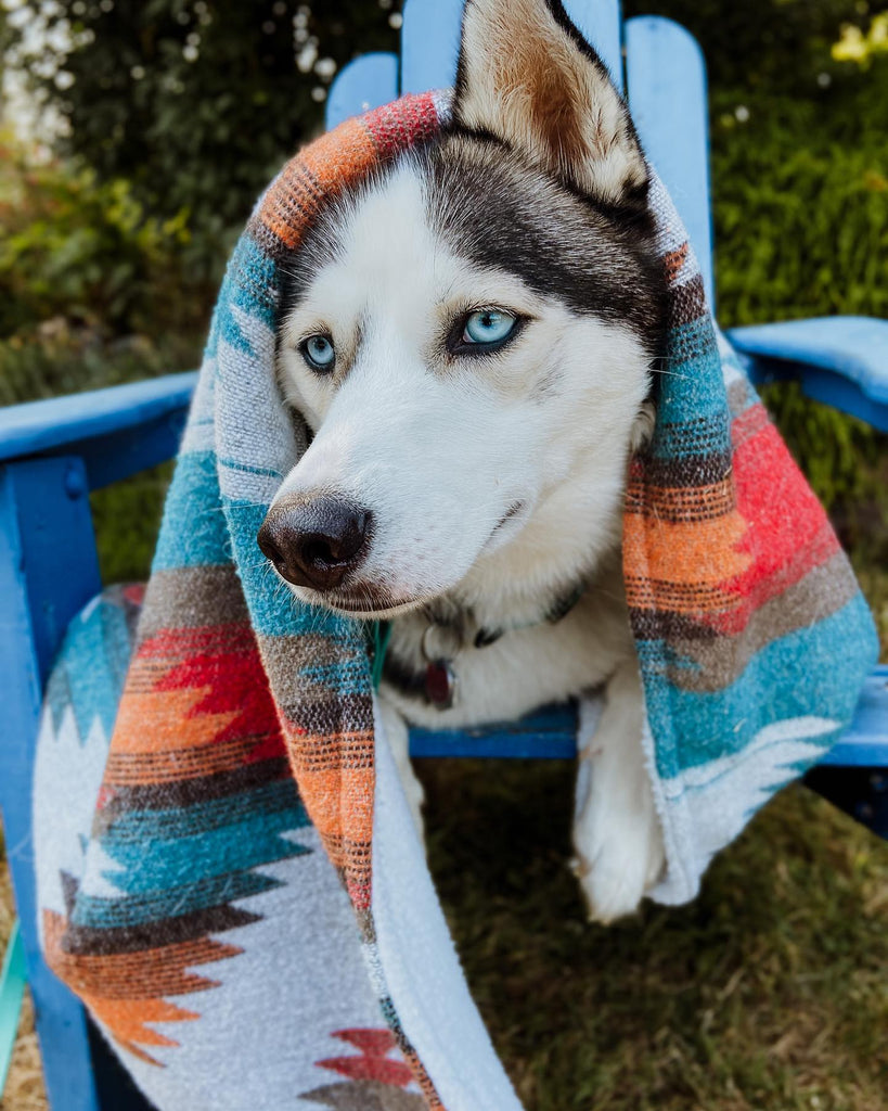 Handmade on Vancouver Island, Wild Husky’s cotton bandanas offer variety of fun patterns, with sizes to fit any dog – itty-bitty toy breeds to Great Danes and shaggy Newfoundlanders have all enjoyed walking out our door with these metal snap-closure bandanas. WHC also offers a cozy sherpa-lined wool-blend blanket, great for car rides or curling up for naps.